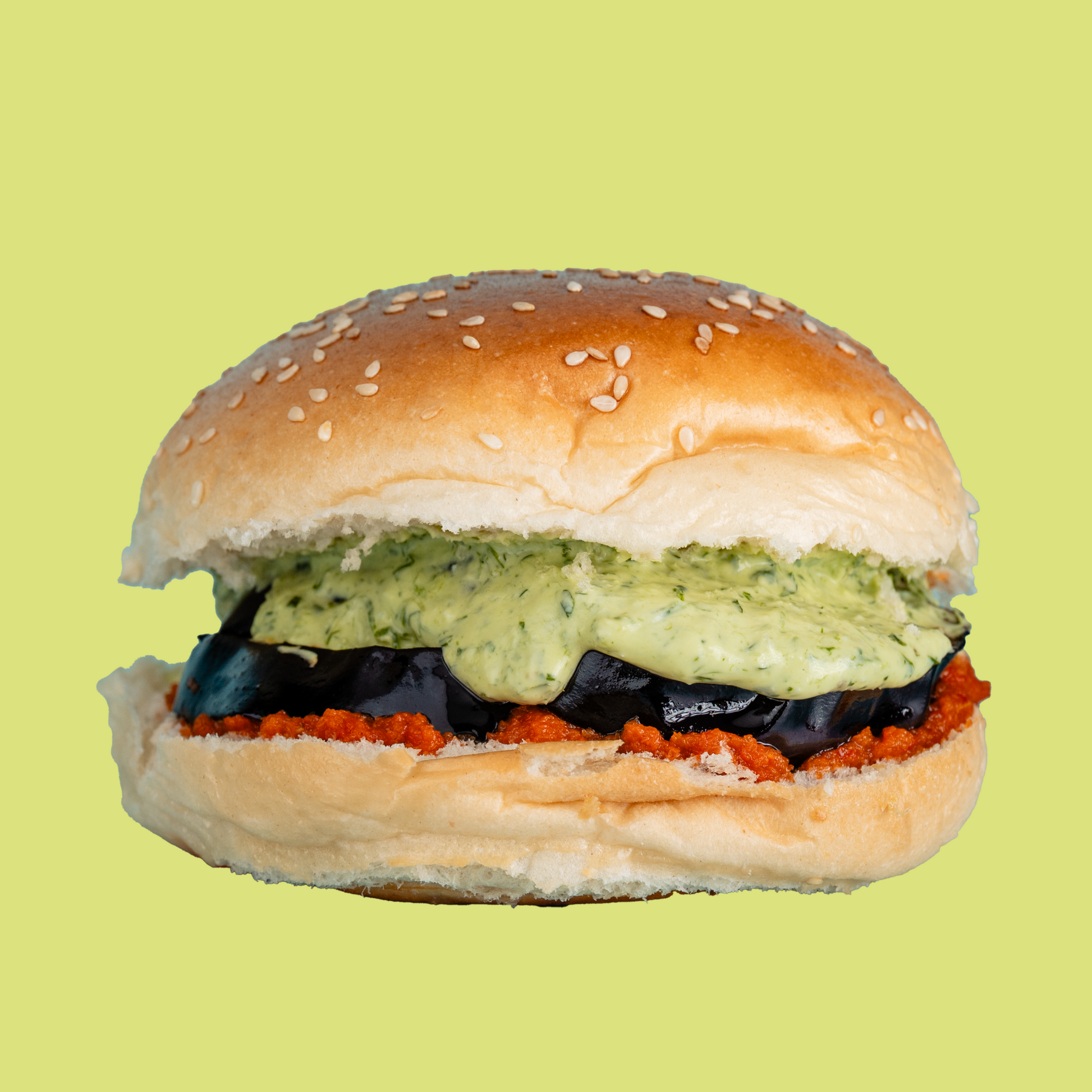 gegrillte Aubergine auf würziger Harissa-Tomatencreme und frischer Minz-Mayonnaise – orientalisch inspiriert, leicht und aromatisch.