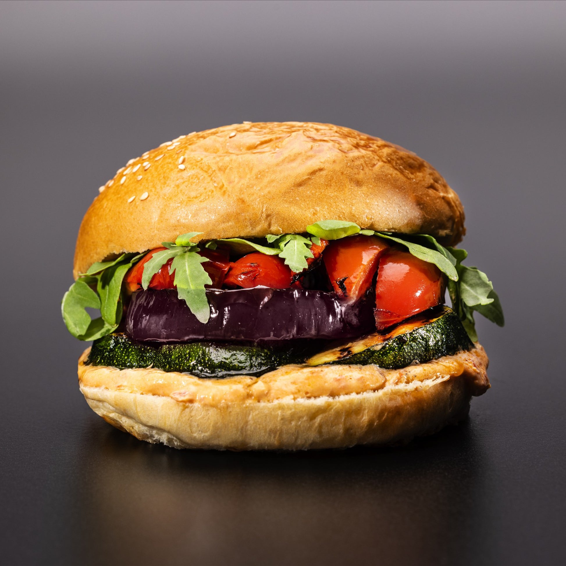 Zucchini, Aubergine und Paprika, vereint mit einer würzigen Tomaten-Oregano-Mayonnaise und frischem Rucola – ein mediterraner Gemüsetraum.